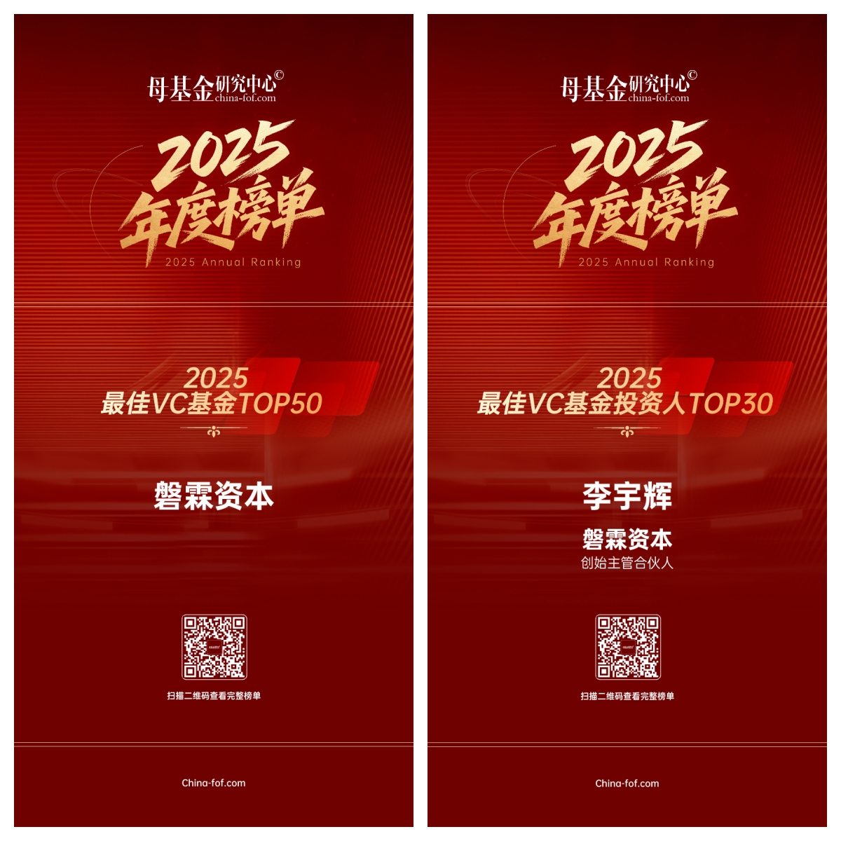 「磐霖资本」蝉联母基金研究中心年度榜单、钛媒体创投家先锋榜,获评2025年度VC基金TOP50等奖项